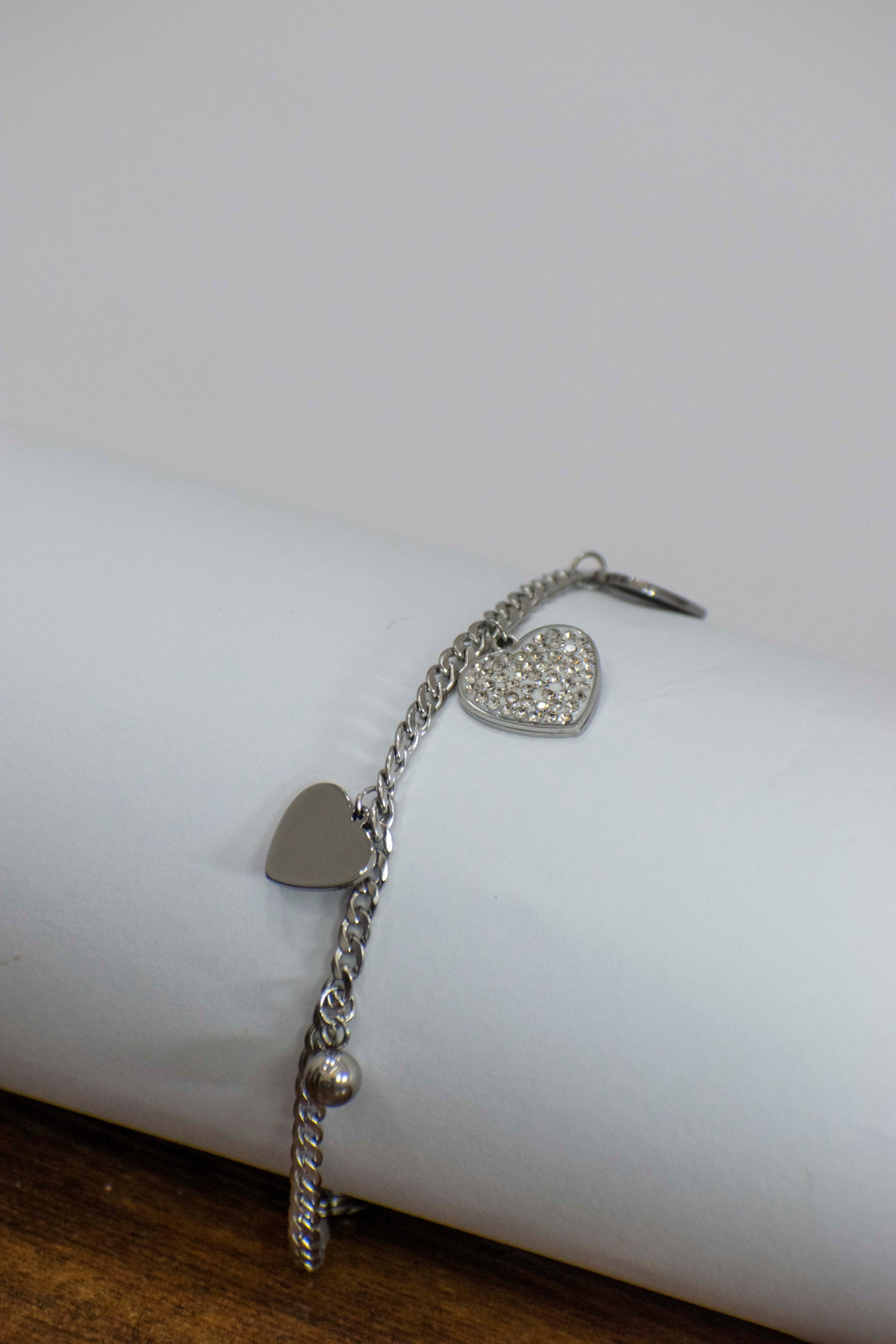 Bracciale cuore in acciaio inossidabile e chiusura regolabile.