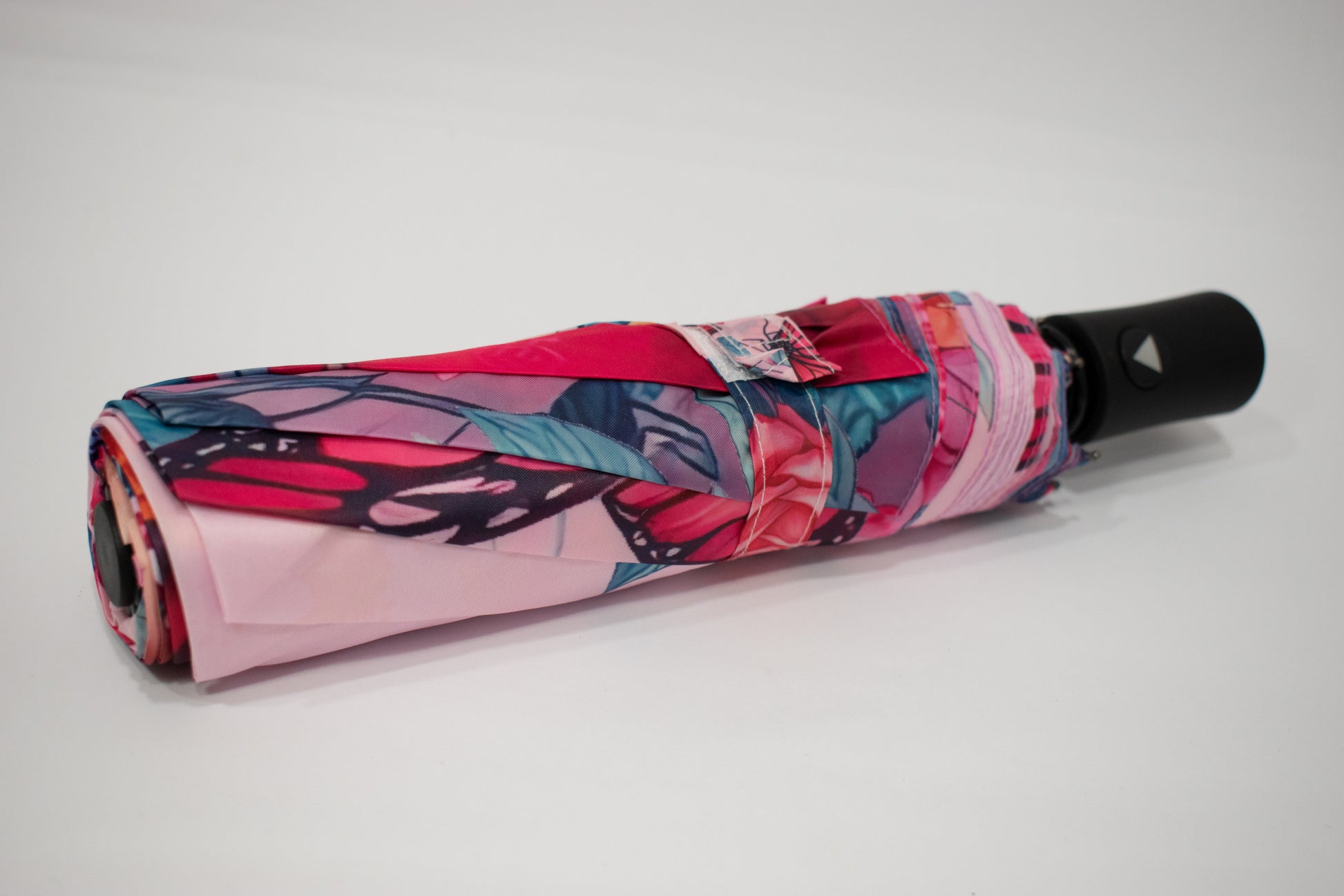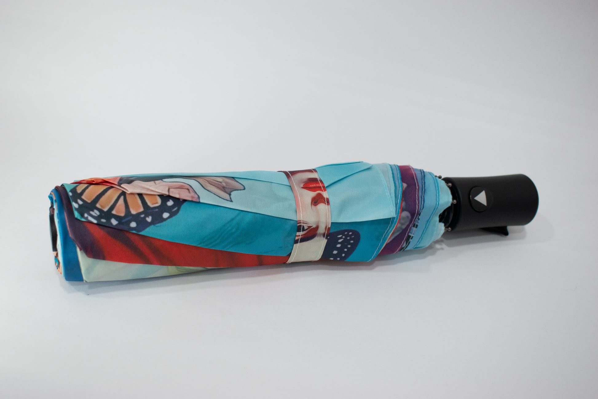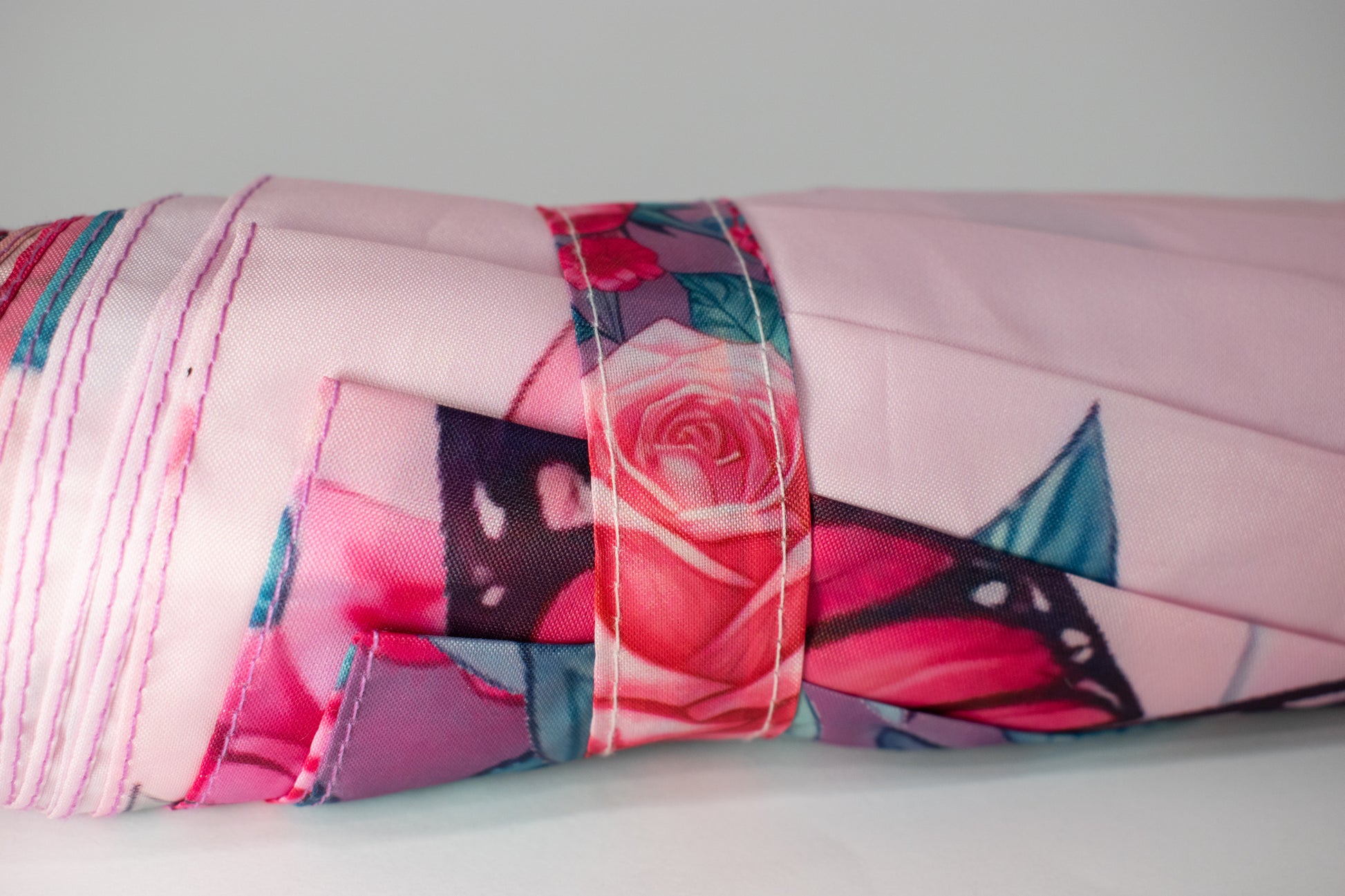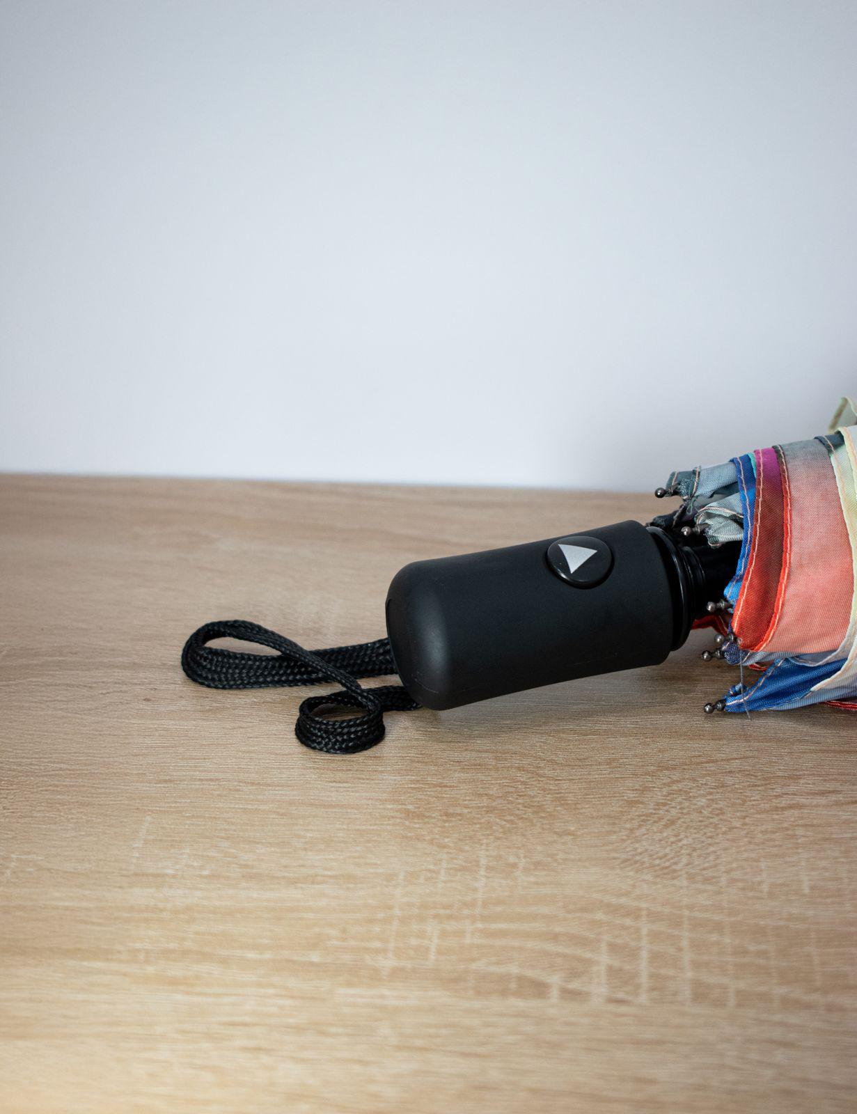 Ombrello con chiusura a scatto, fodera abbinata, chiusura a strappo.